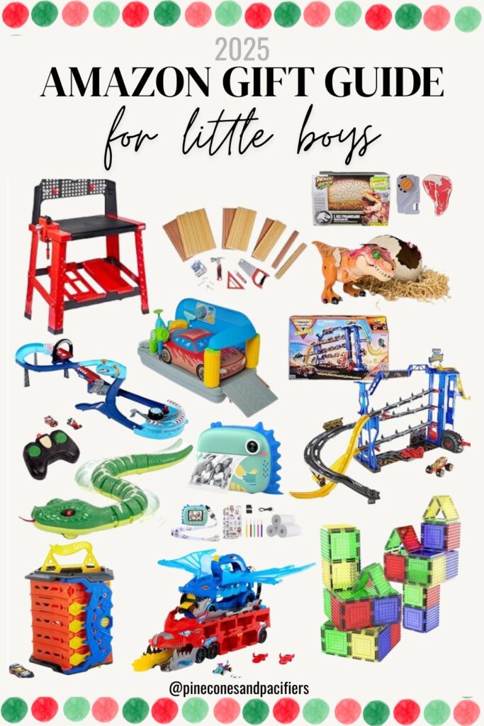 Here are the best gift ideas for little boys (age 3-6) for 2025. Fun new finds like the creative construciton set and robo dinosaur for the little builders and curious kids, plus classic favorites like hot wheels and monster trucks! Click on the image or link below to shop.
